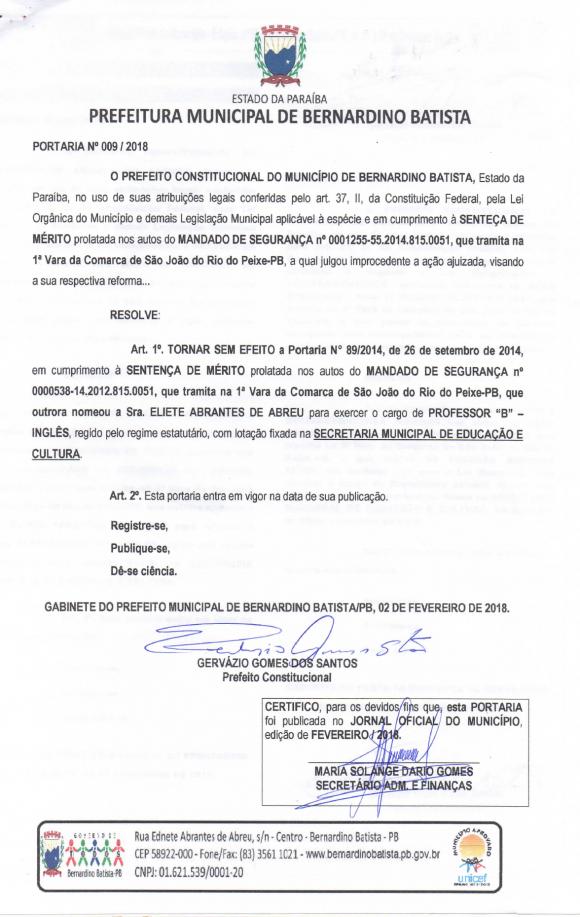 Rua Ednete Abrantes de Abril, 30, Centro Bernardino Batista/PB - CEP: 58922-000