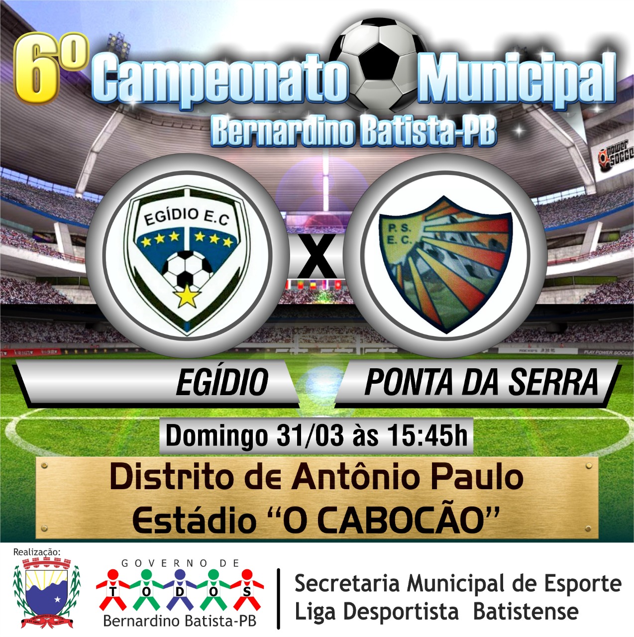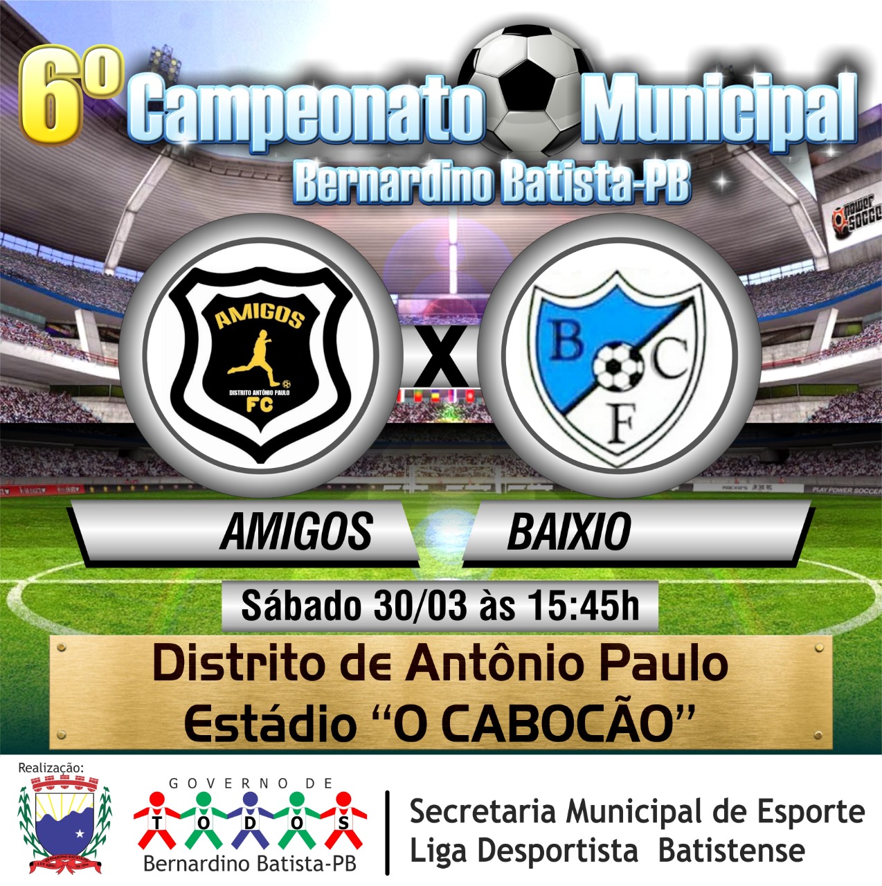 sabado: 15:45 no estadio o "Cabocão" no Distrito Antonio Paulo: Amigos X Baixio