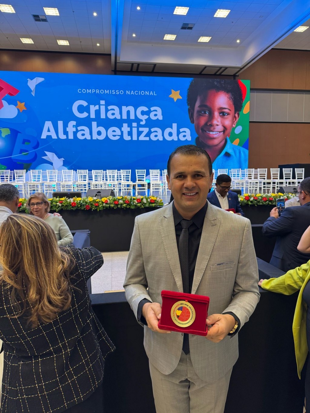 O prefeito Aldo Andrade divulgou em suas redes sociais . “Nesta segunda, dia 10, aqui em Brasília, tive a honra de receber oficialmente o Selo Ouro pelo Compromisso Nacional Criança Alfabetizada” postou o prefeito