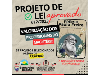 Bernardino Batista destaca-se na política de valorização dos profissionais do magistério, incentivando o desenvolvimento de práticas pedagógicas exitosas que fortaleçam a qualidade do ensino e aprendizagem dos estudantes da Rede Municipal de Ensino.
