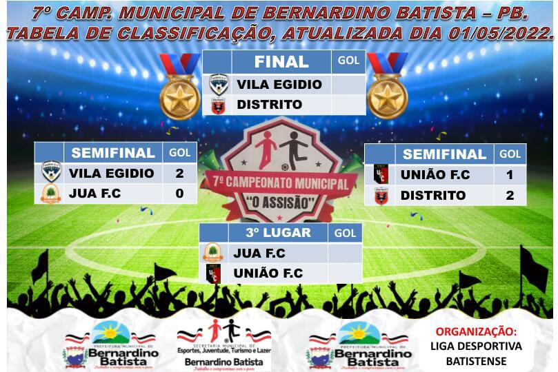 Após partidas eletrizantes ocorridas no ultimo final de semana pela fase semifinal do campeonato municipal de Bernardino Batista, Distrito e Vila Egidio entrarão em campo para a ultima partida em que Será conhecido o campeão da edição 2022 da competição.