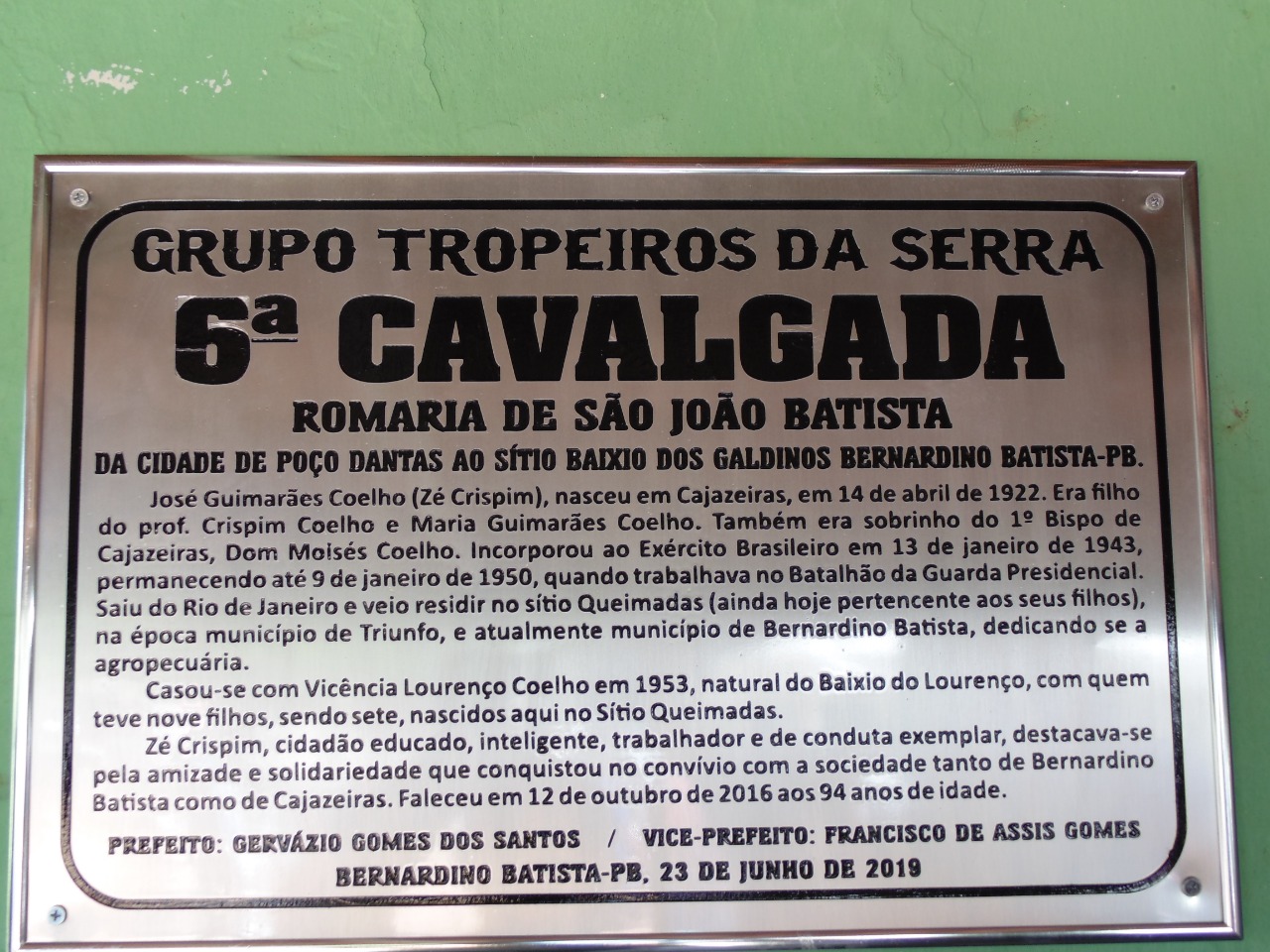 A tradicional Cavalgada teve o seu percurso saindo da cidade de Poço Dantas com café da manhã na residência do ex prefeito Itamar Moreira, onde foi servido um cafe da manha e lanche, em seguida se deslocando para o Baixio dos Lourenço, onde foi proferida a benção litúrgica e, para o sitio Queimadas, zona rural de Bernardino Batista onde foi servido almoço e o tradicional "bate-sela" na residência de José Crispim (in memorian), onde os familiares e amigos fizeram uma emocionante homenagem, finalizando o roteiro para a comunidade de Baixio dos Galdinos, destino final da cavalgada, onde uma grande festa cultural foi realizada sob a animação de “Forró Tora Chinela” e muita animação.