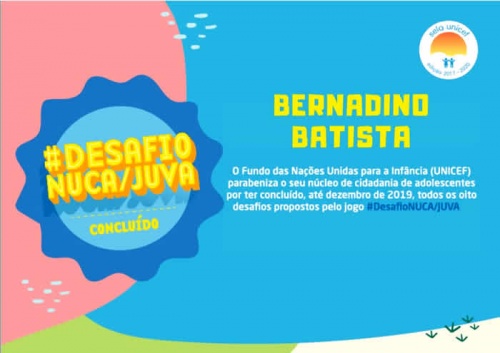 Em setembro de 2019, durante a capacitação para mobilizadores dos NUCAS na Paraíba, a equipe de adolescentes do UNICEF criou e apresentou uma forma ainda mais divertida para engajar os núcleos de cidadania de adolescentes (NUCAs/JUVAs) na realização dos oito desafios propostos pela metodologia do Selo UNICEF, o #DesafioNUCA/JUVA, que consistia em uma certificação para os municípios que conseguissem concluir todos os desafios e postar na Plataforma Crescendo Juntos.