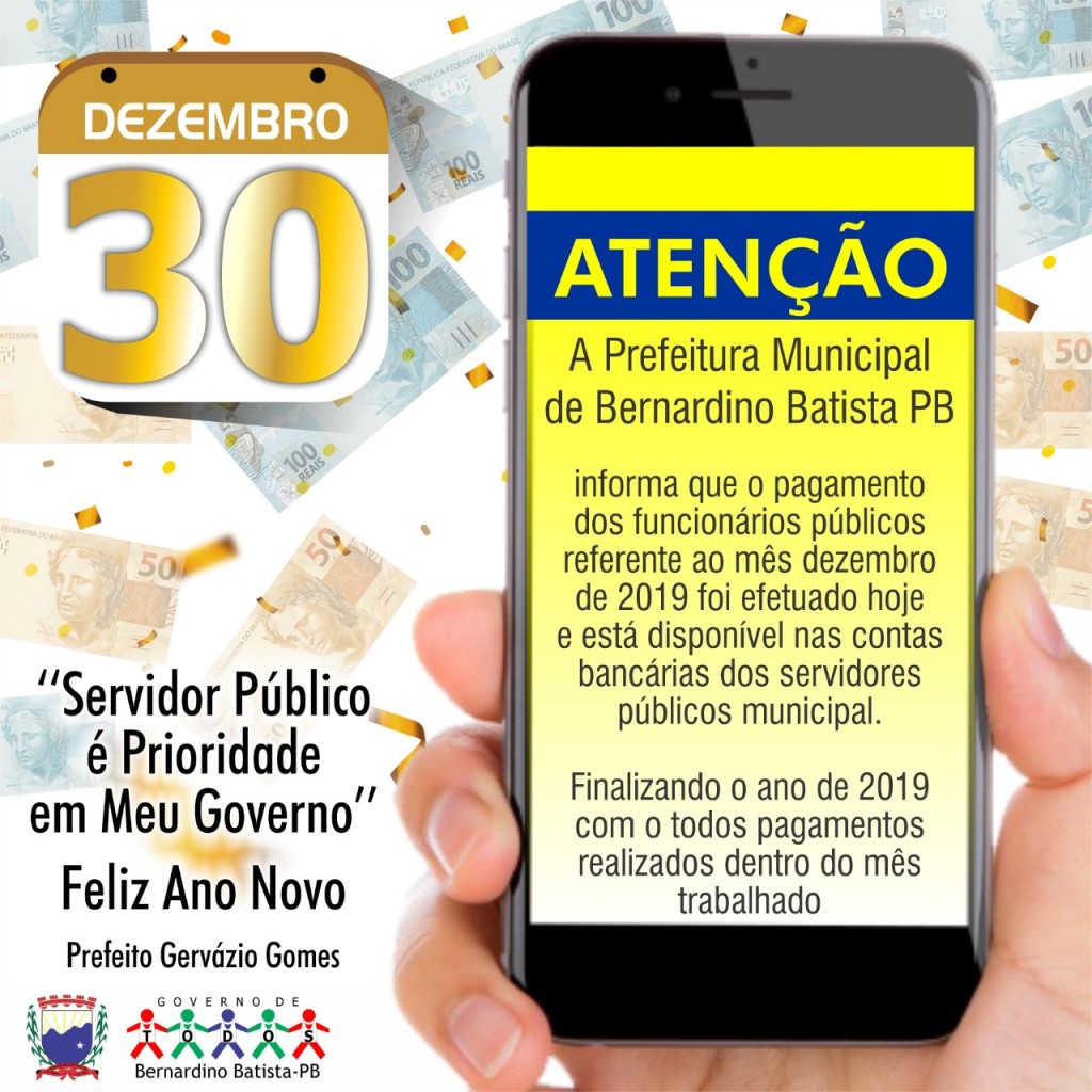conta de todos os servidores municipais os salários referente a dezembro, o