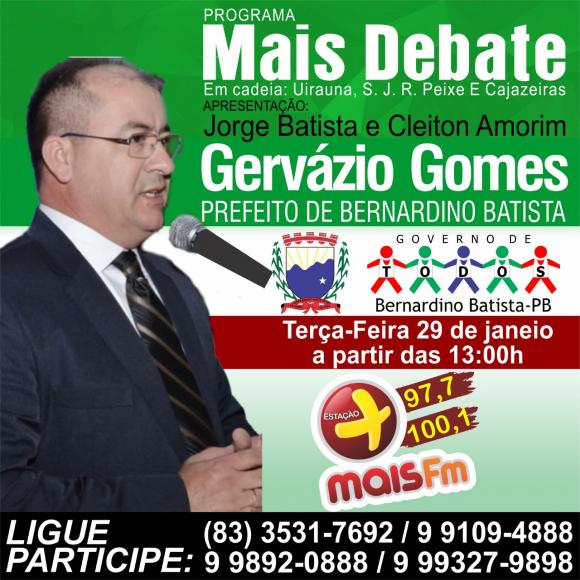 Prefeito Gervazio Gomes será entrevistado nesta terça feira no programa Mais Debate da Radio Mais Fm