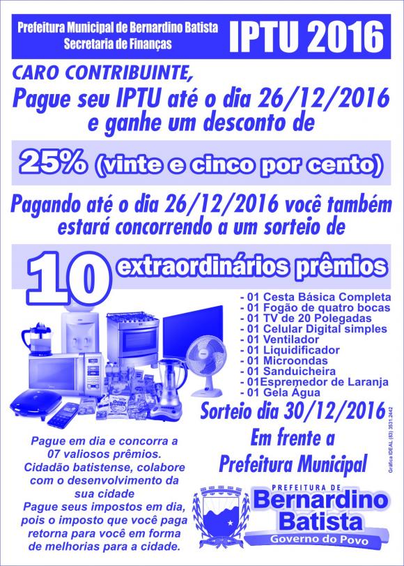 campanha do IPTU premiado, que se estenderá até o dia 26 de dezembro.